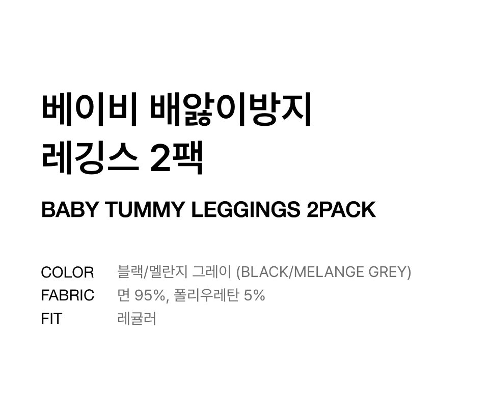 베이비 배앓이방지 레깅스 2팩 [블랙/멜란지 그레이]