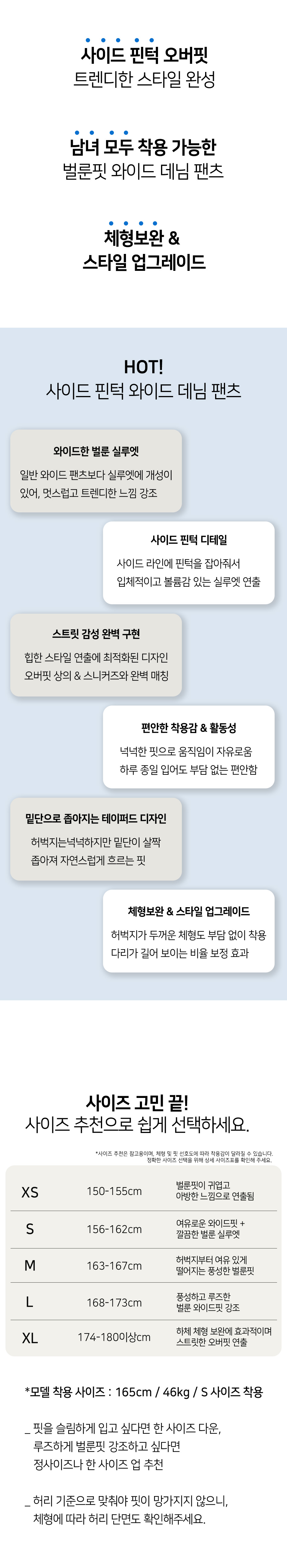 P56_[기본/롱/S~3XL/4컬러] 옆핀턱 와이드 워싱 데님 팬츠 / 중청