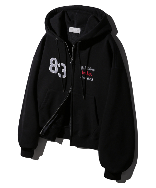 [기모] 스마일 피치 브러쉬 래글런 후드집업 BK7976_블랙