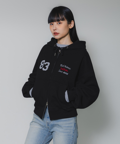 포시즌 Embroidered 투웨이 후드집업 BK7993_블랙