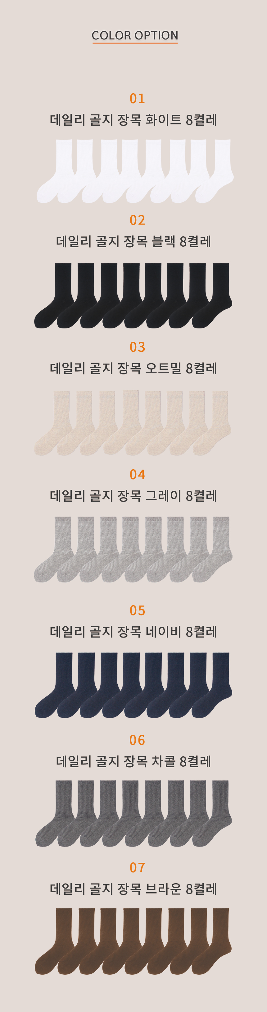 [5pack] 뉴라이트 컬러 골지 중목 양말