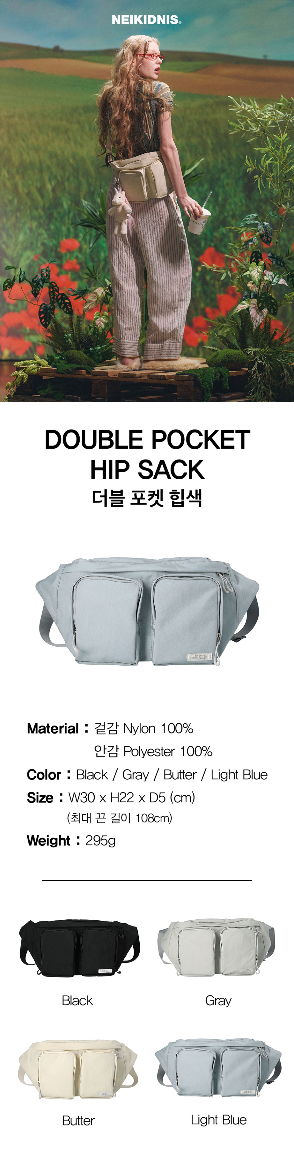 더블 포켓 힙색 라이트 블루