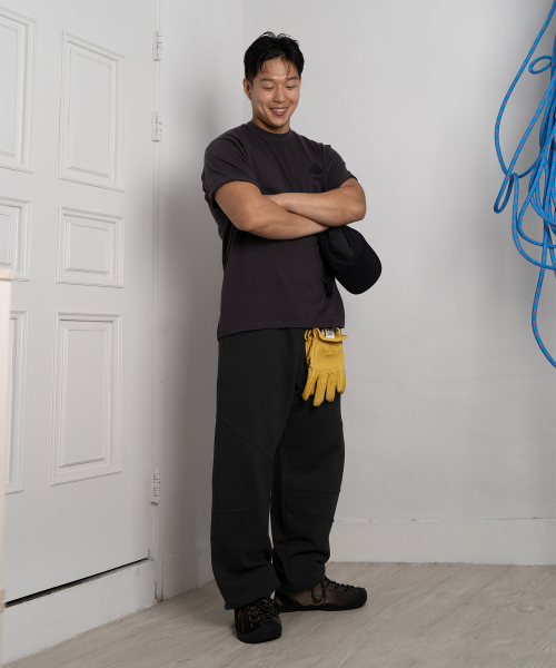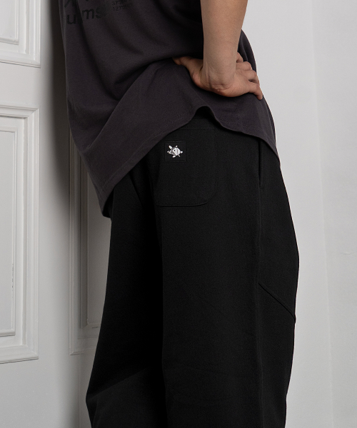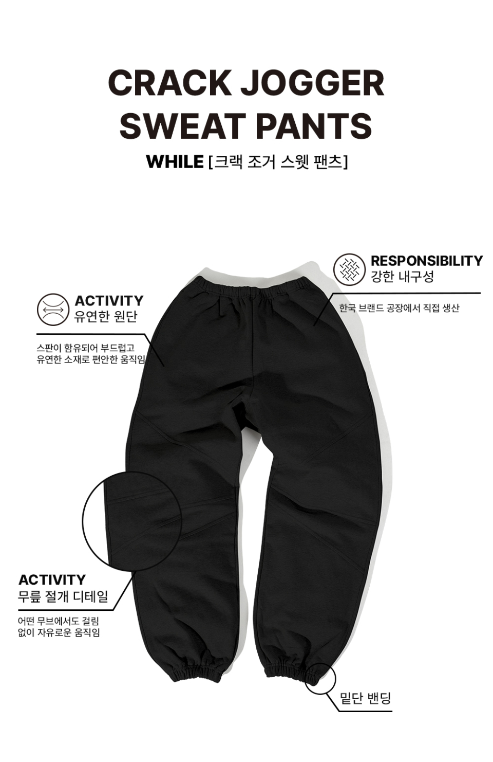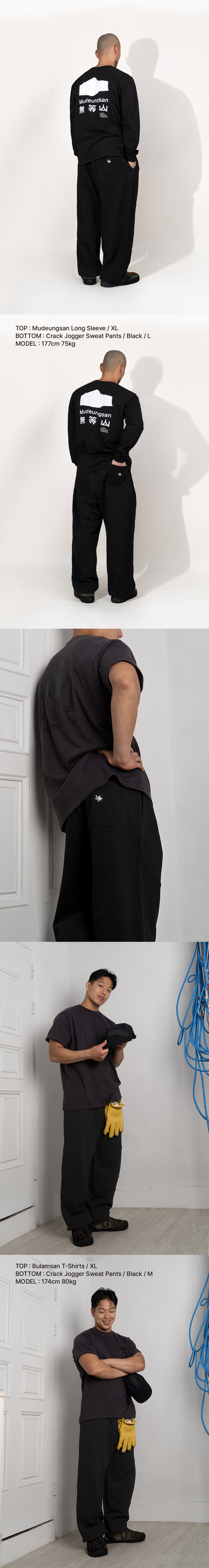 크랙 조거 스웻 와이드 벌룬 팬츠 등산 헬스 운동 츄리닝 바지 (BLACK)