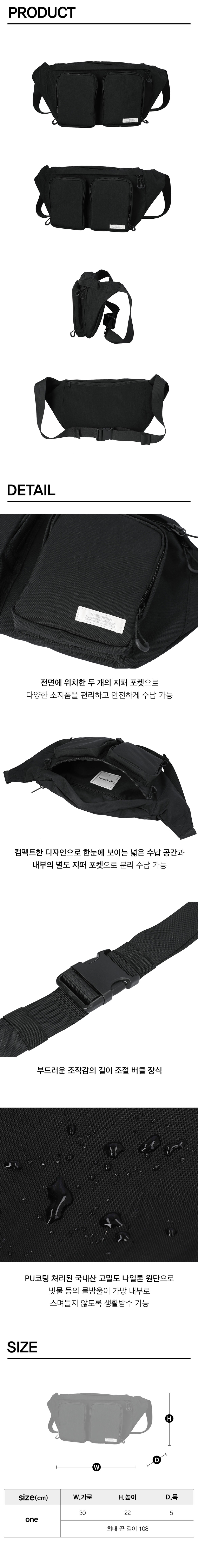 • PU코팅된 고밀도 국내산 나일론 원단으로 생활방수 가능