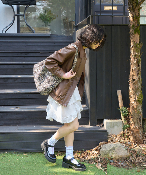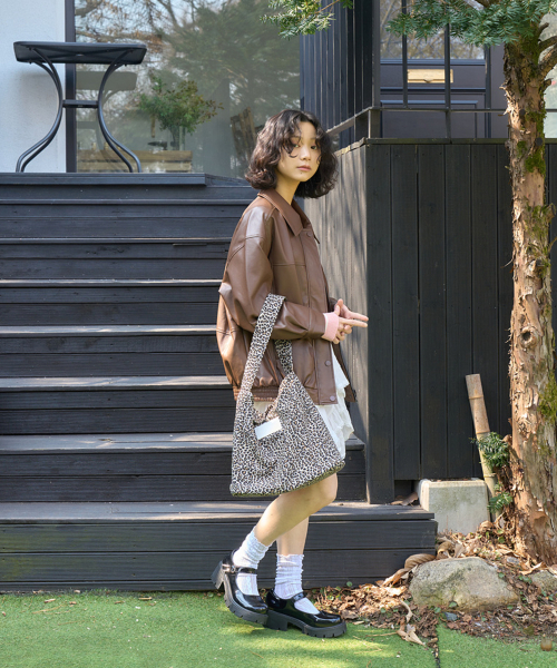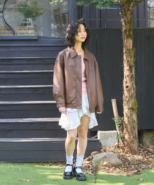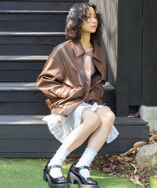 FAUX 레더 오버핏 쟈켓 [브라운]