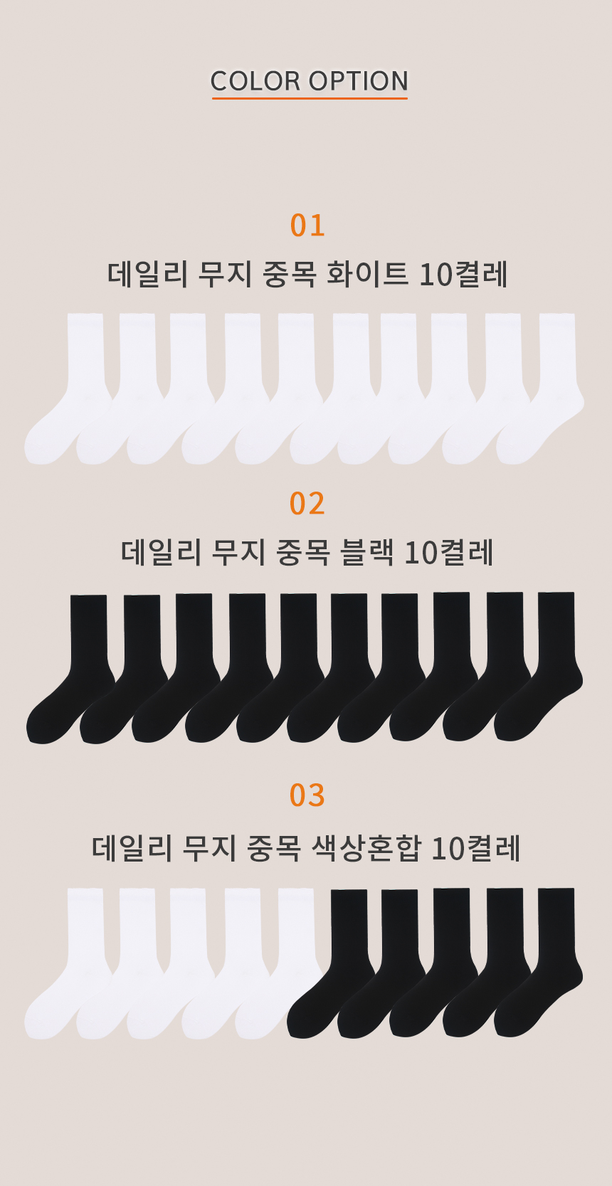 [10pack] 베이직 무지 중목양말