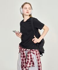 여성 모달 크루넥 레귤러핏 반팔 티셔츠 블랙 LATS0222