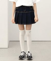 데님 플리츠 스커트 Navy