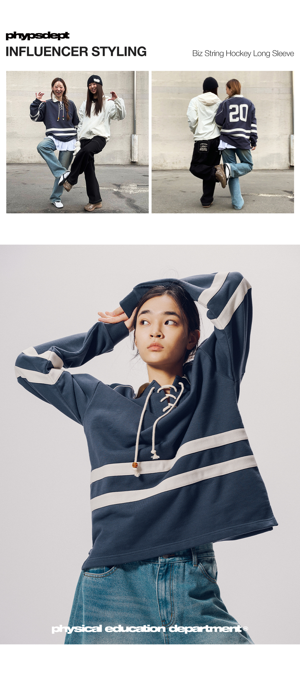 피지컬 디파트먼트(PHYSICAL DEPARTMENT)는 직관적이고 클래식한 스포츠 웨어와는 다르게, 조금 더 YOUNG 하고 캐주얼한 느낌의 스포츠 웨어 스타일을 제안합니다. 체육 학과, 체육부 등에서 영감받아 전개하는 브랜드입니다.
