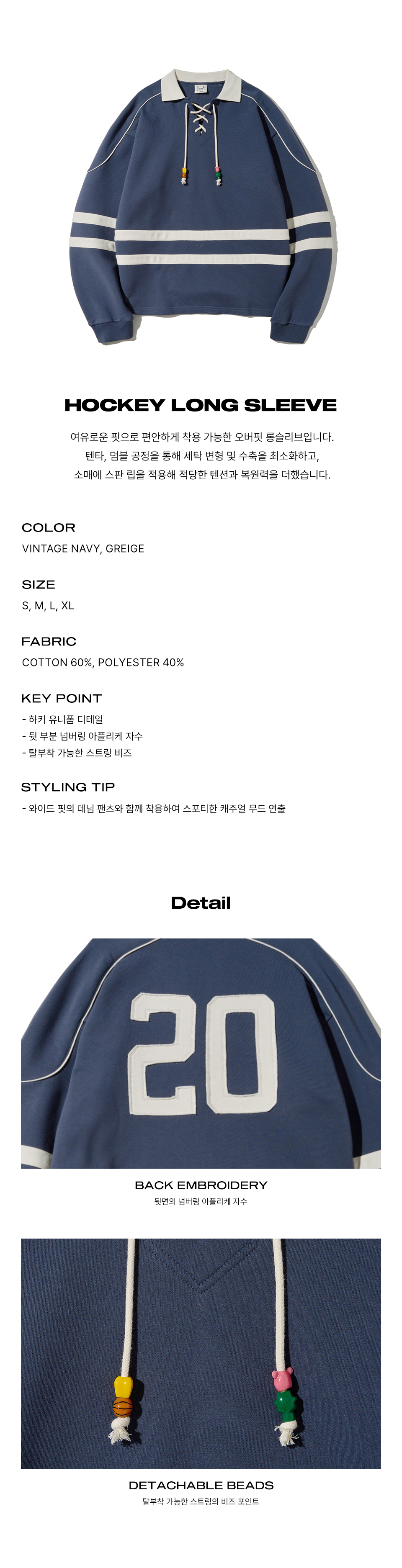 비즈 스트링 하키 롱슬리브_빈티지 네이비
