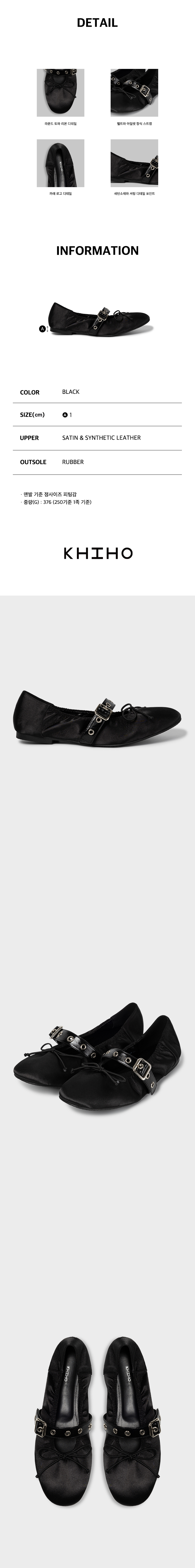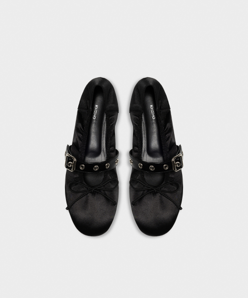 크리스탈 버클 스트랩 발레리나 플랫 블랙