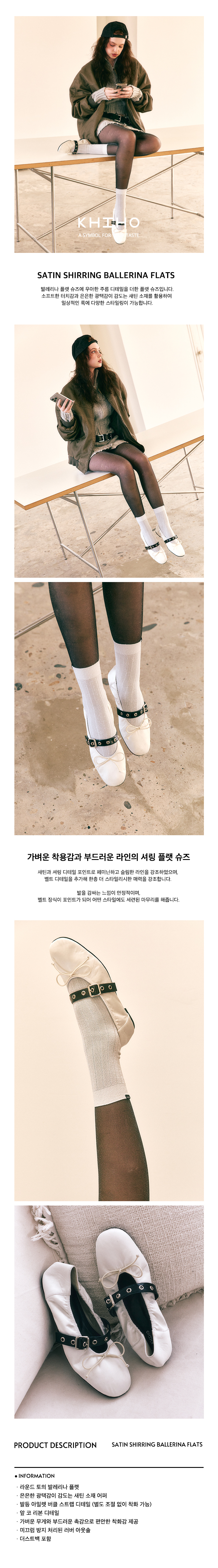 새틴 셔링 발레리나 플랫 3color