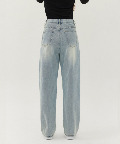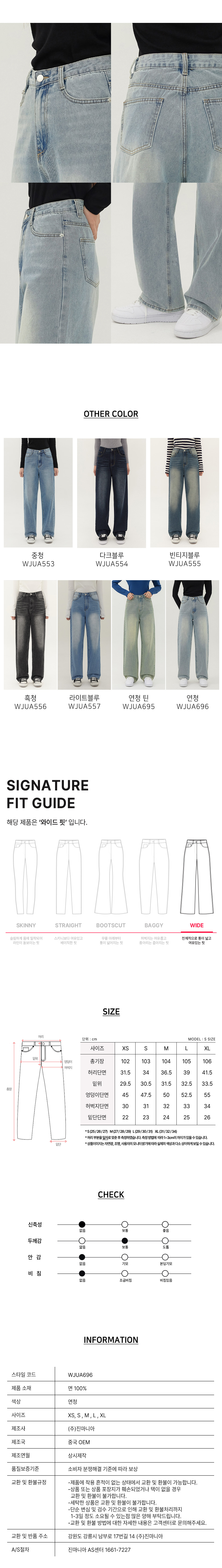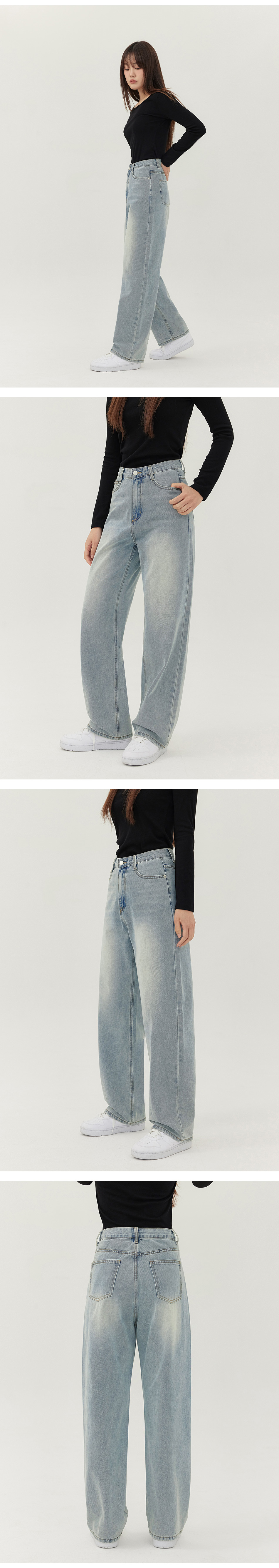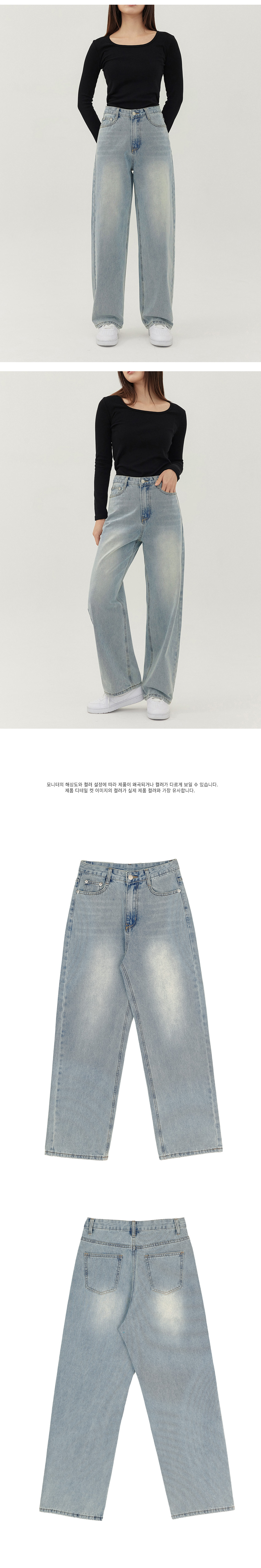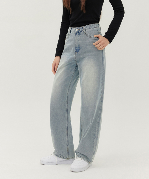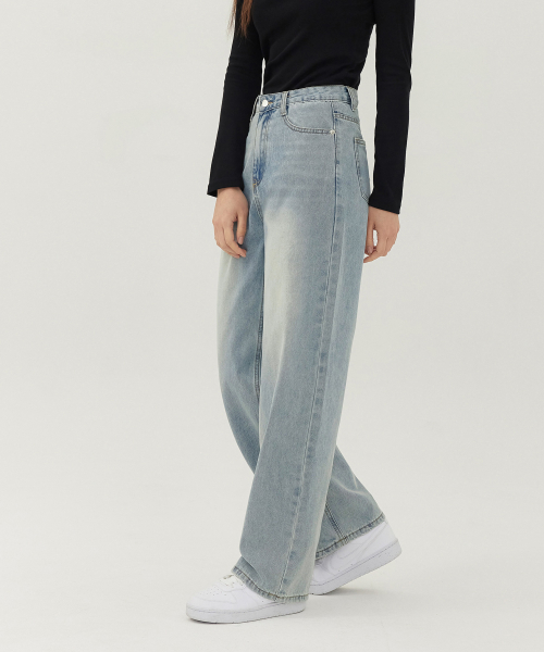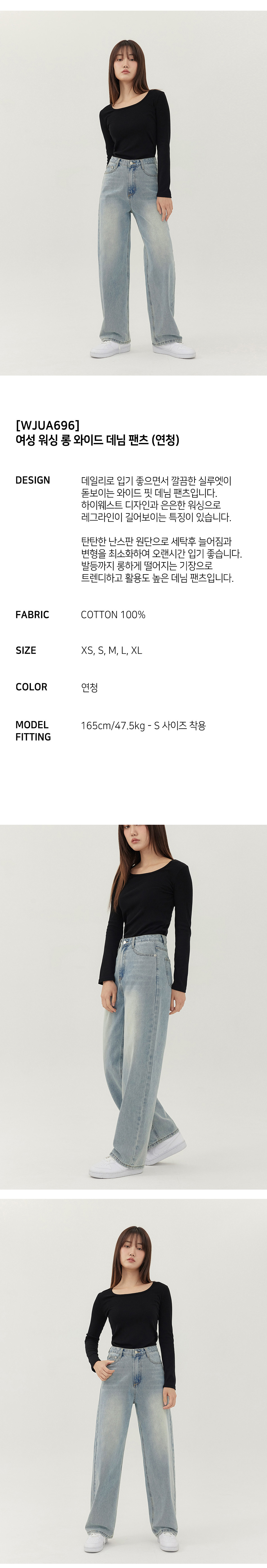 여성 워싱 롱 와이드 데님 팬츠 (연청)