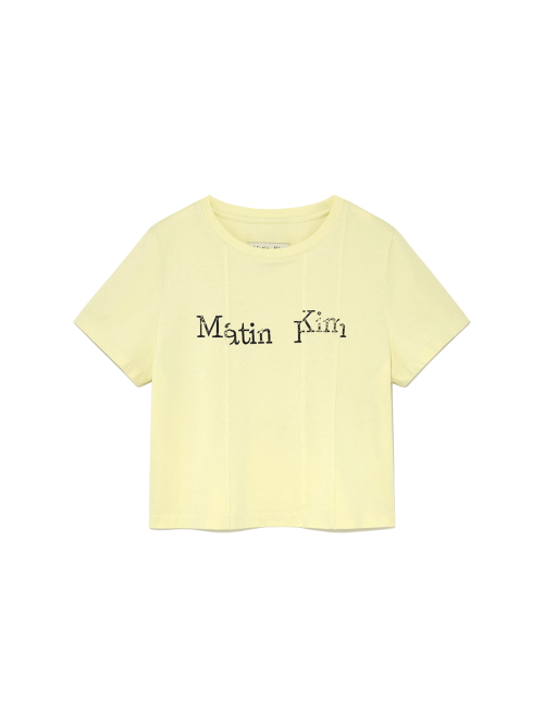 언발하게 변형된 아트워크가 포인트인 크롭 티셔츠