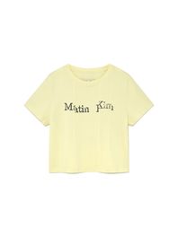언발하게 변형된 아트워크가 포인트인 크롭 티셔츠