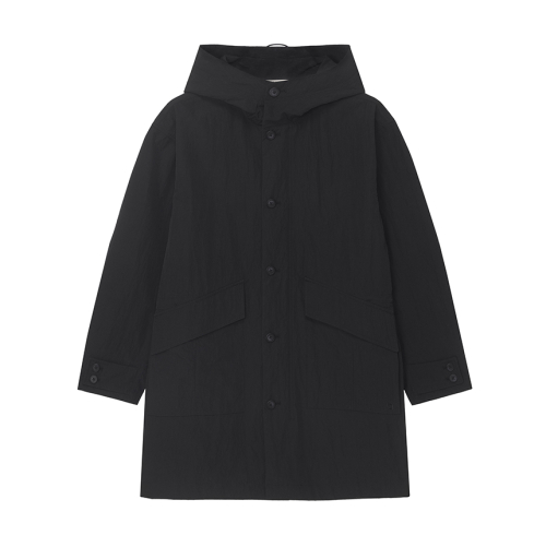 생활 방수가 되는, 하이넥 디테일의 활용도 높은 후드 코트입니다.
