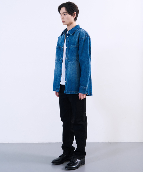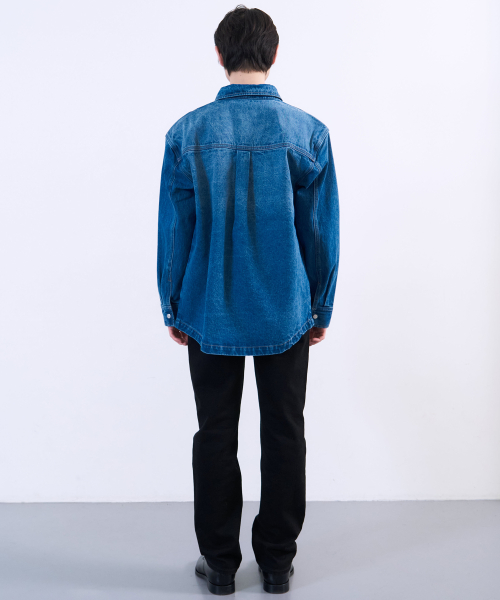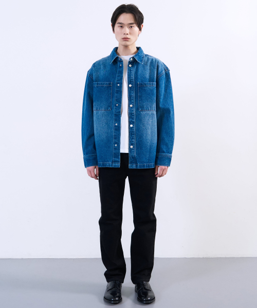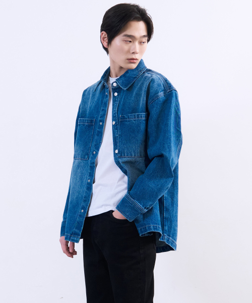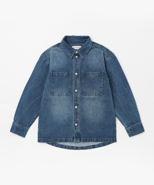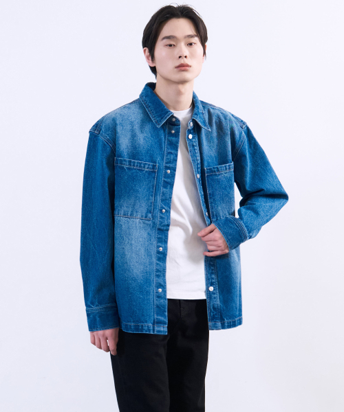 워시드 데님 셔켓 미드 블루