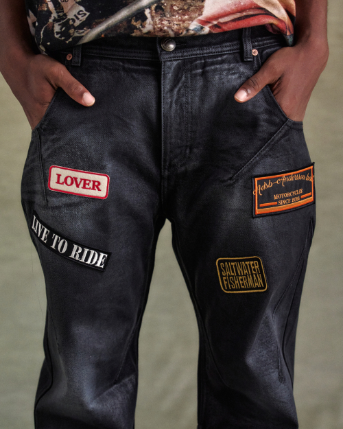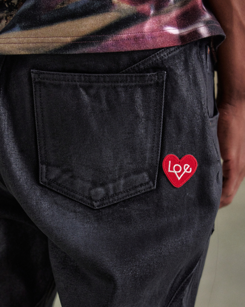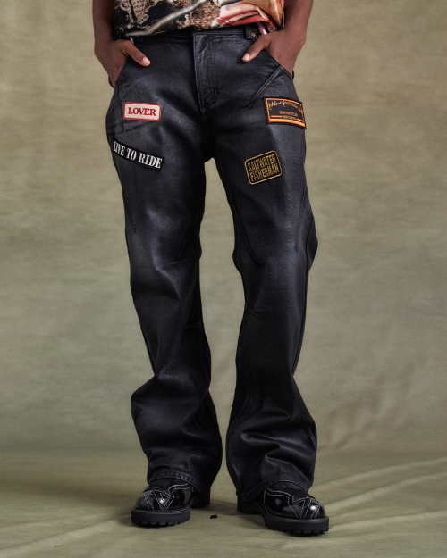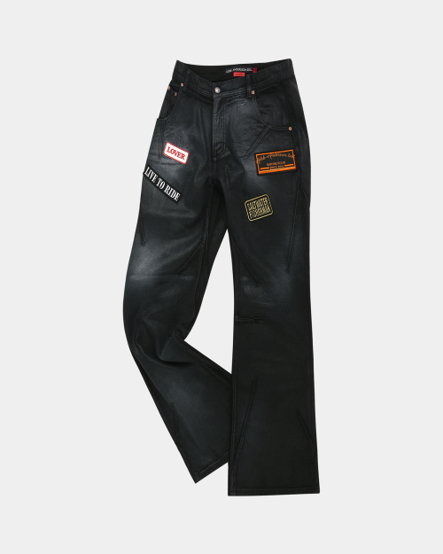 ADSB 패치 스프레이 워쉬 와이드 레그 데님 팬츠 apa816m(BLACK)