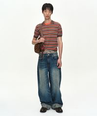 UNISEX TRUNK LAYERED WIDE-LEG JEANS apa910u(BLUE)
