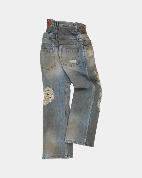 유니섹스 빈티지 스프레이 더블 웨이스트 진 apa832u(DUSTY BLUE)