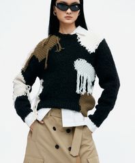 SYLVIA ABSTRACT PATCHWORK SWEATER atb1365w(BLACK)