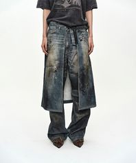 DENIM TROMPE-LOEIL GRAPHIC WRAP SKIRT apa918w(MID BLUE)