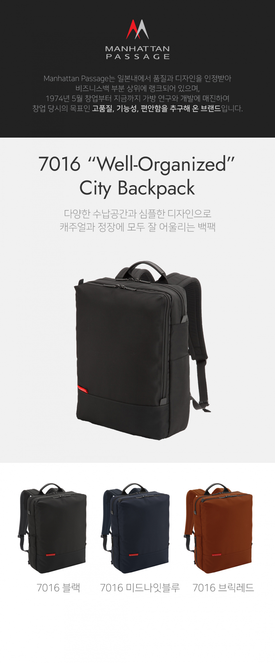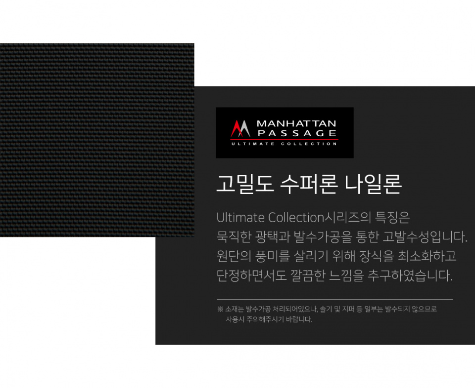 MANHATTANPASSAGE(맨하탄페세지)는 일본 내 품질과 디자인을 인정받아 비즈니스 백 판매 부분 상위에 랭크되어있는 40년 전통의 브랜드입니다.