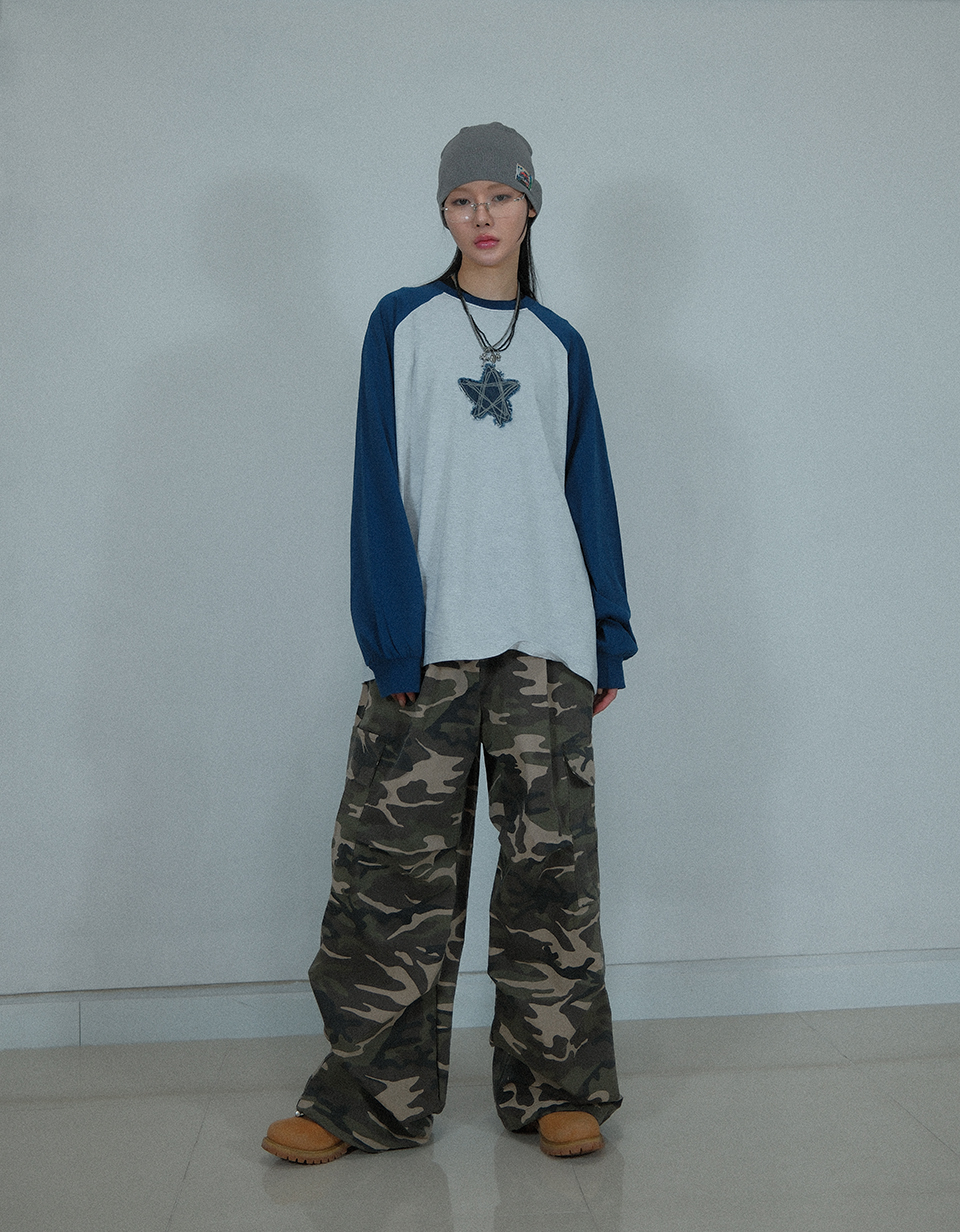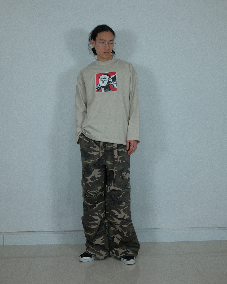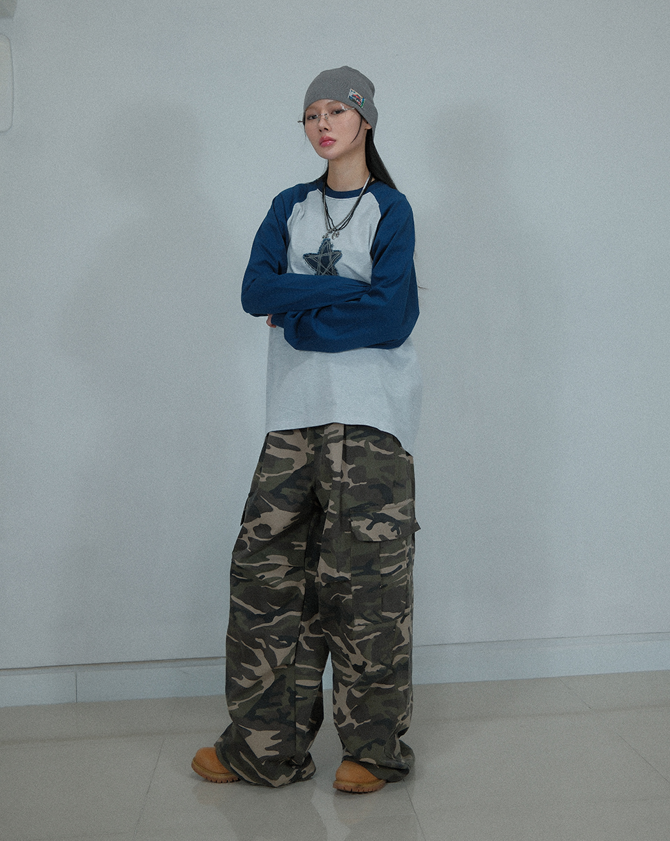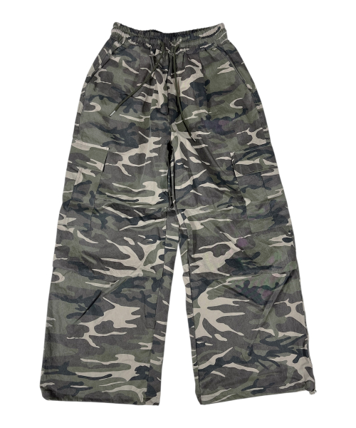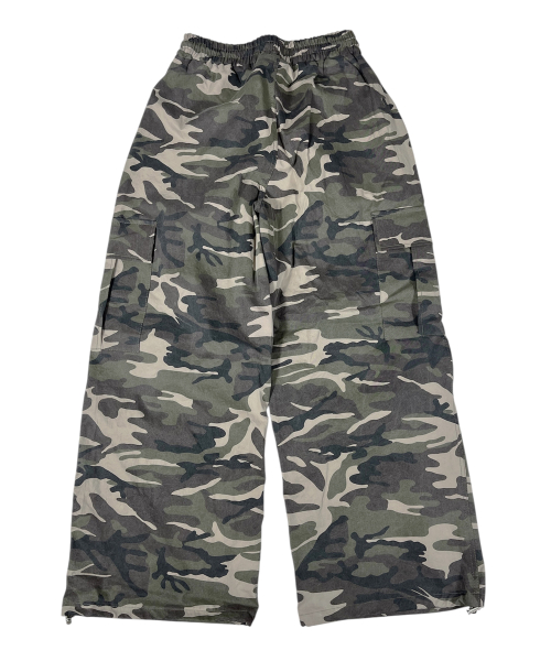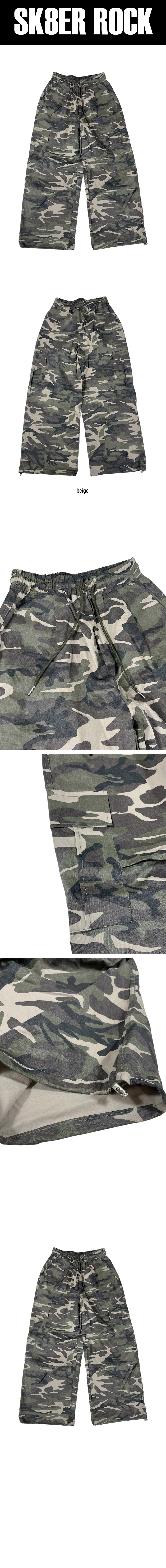 Camouflage Cotton Cargo Wide Pants ((Beige))