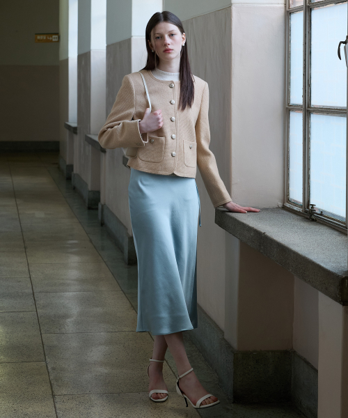 SATIN LONG SKIRT CREAM