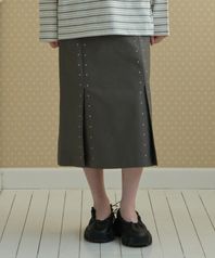STUD LONG SKIRT_CHARCOAL