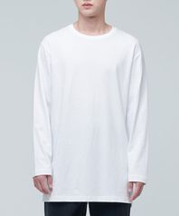 레이어드 크루 넥 긴소매 티셔츠_긴 기장 [화이트]