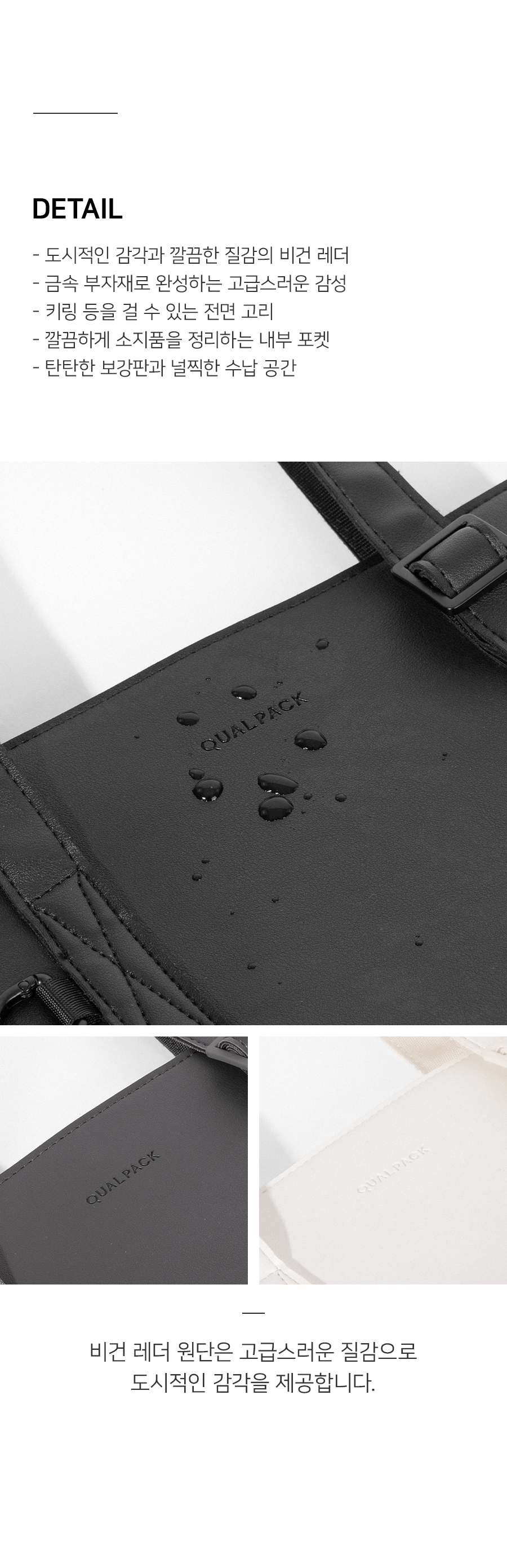 퀄팩(QUALPACK)은 특별한 순간보다 평범하고 익숙한 하루에 더 가까이 다가서며, 익숙함 속의 편안함과 실용성을 담아내는 데일리 백 브랜드입니다.