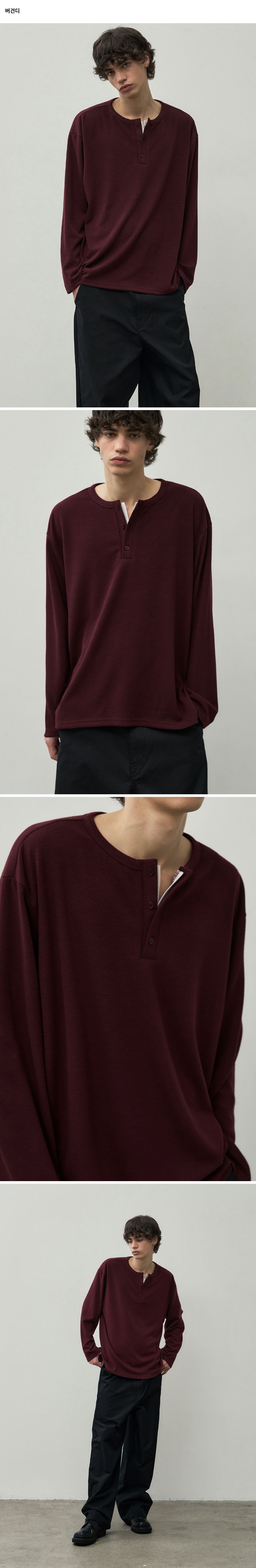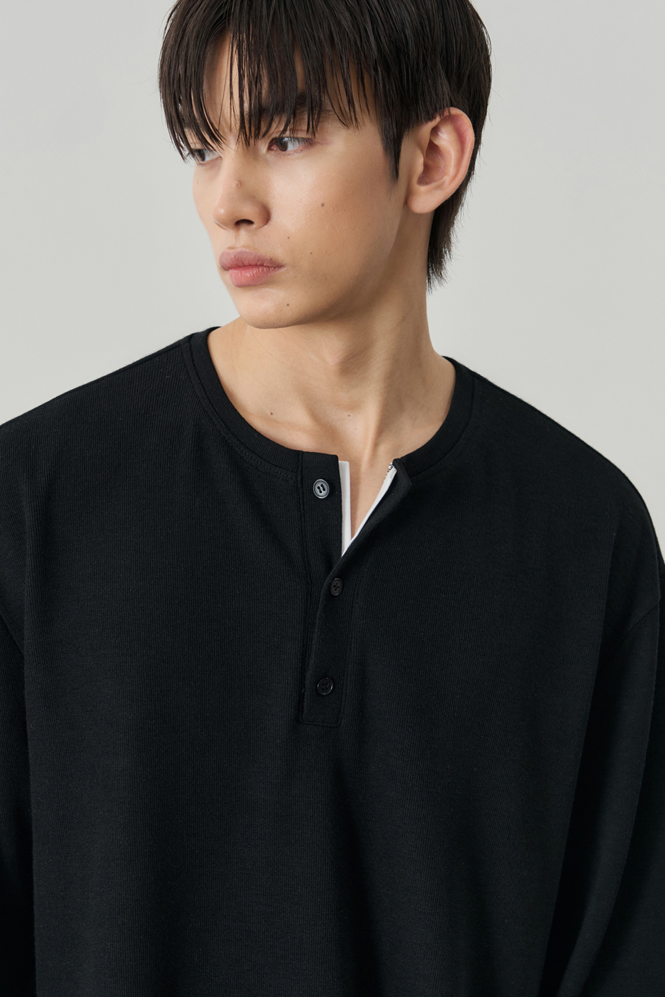 워셔블 레이어드 헨리넥 니트티셔츠 [블랙]