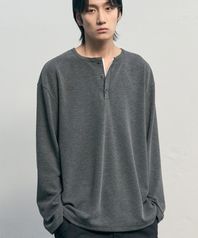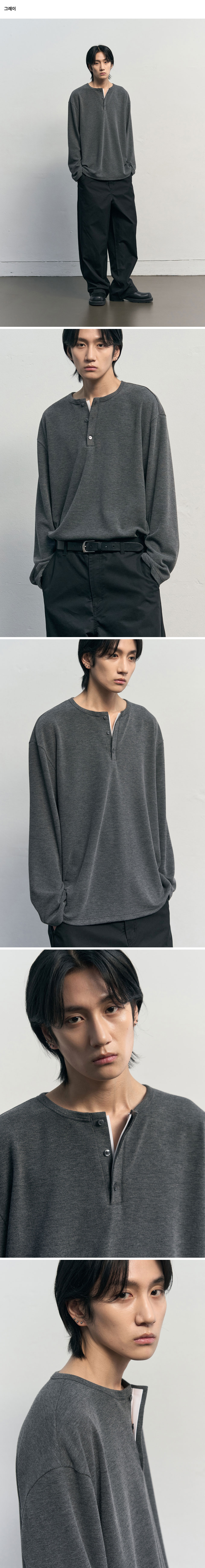 워셔블 레이어드 헨리넥 니트티셔츠 [그레이]