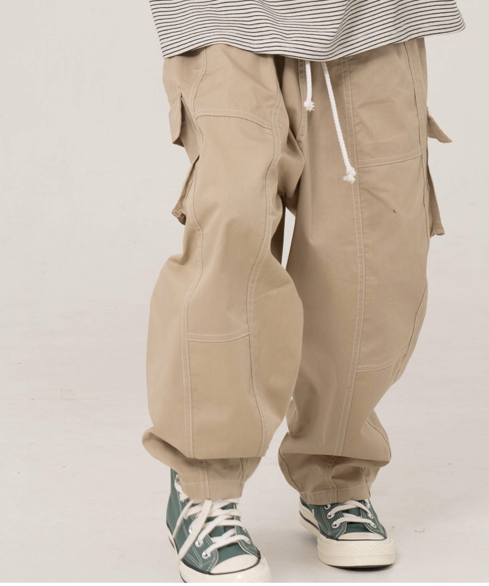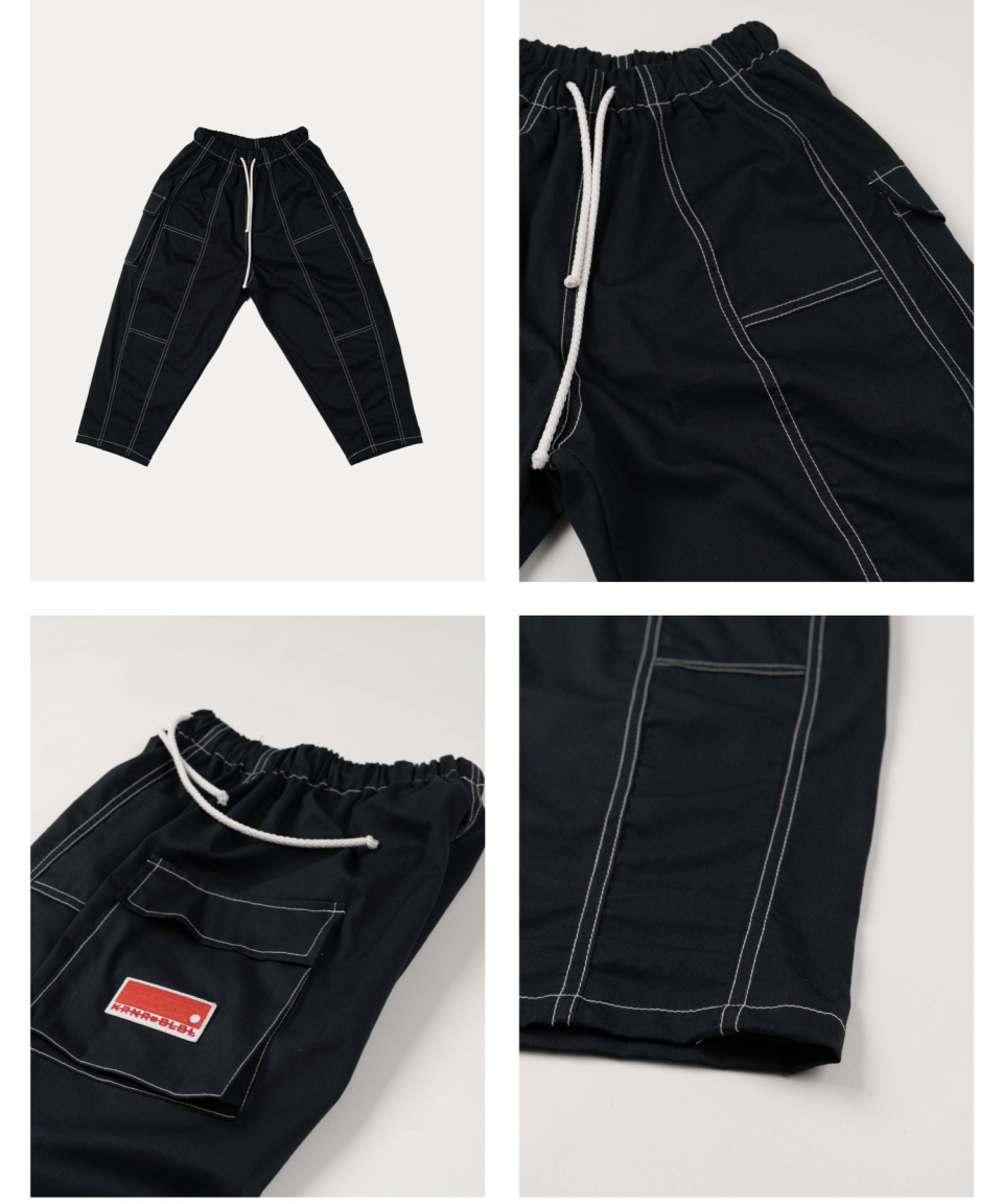 인터 카고 블록 롱 팬츠 블랙