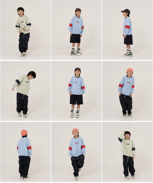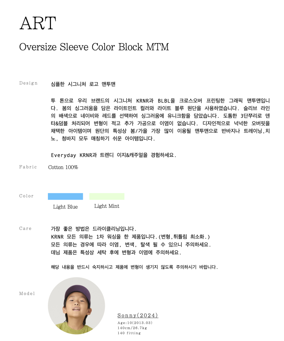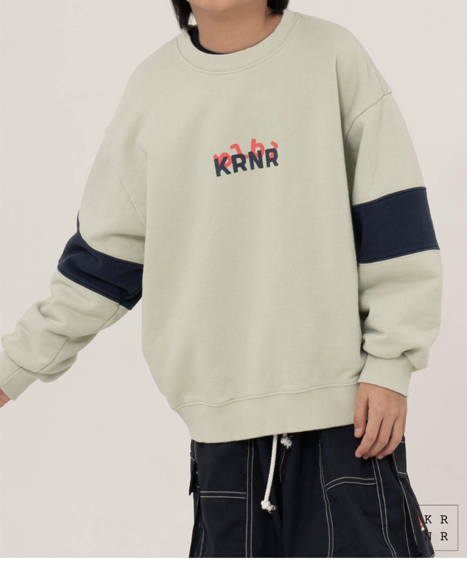 아트 오버사이즈 슬리브 컬러 블록 맨투맨 라이트민트