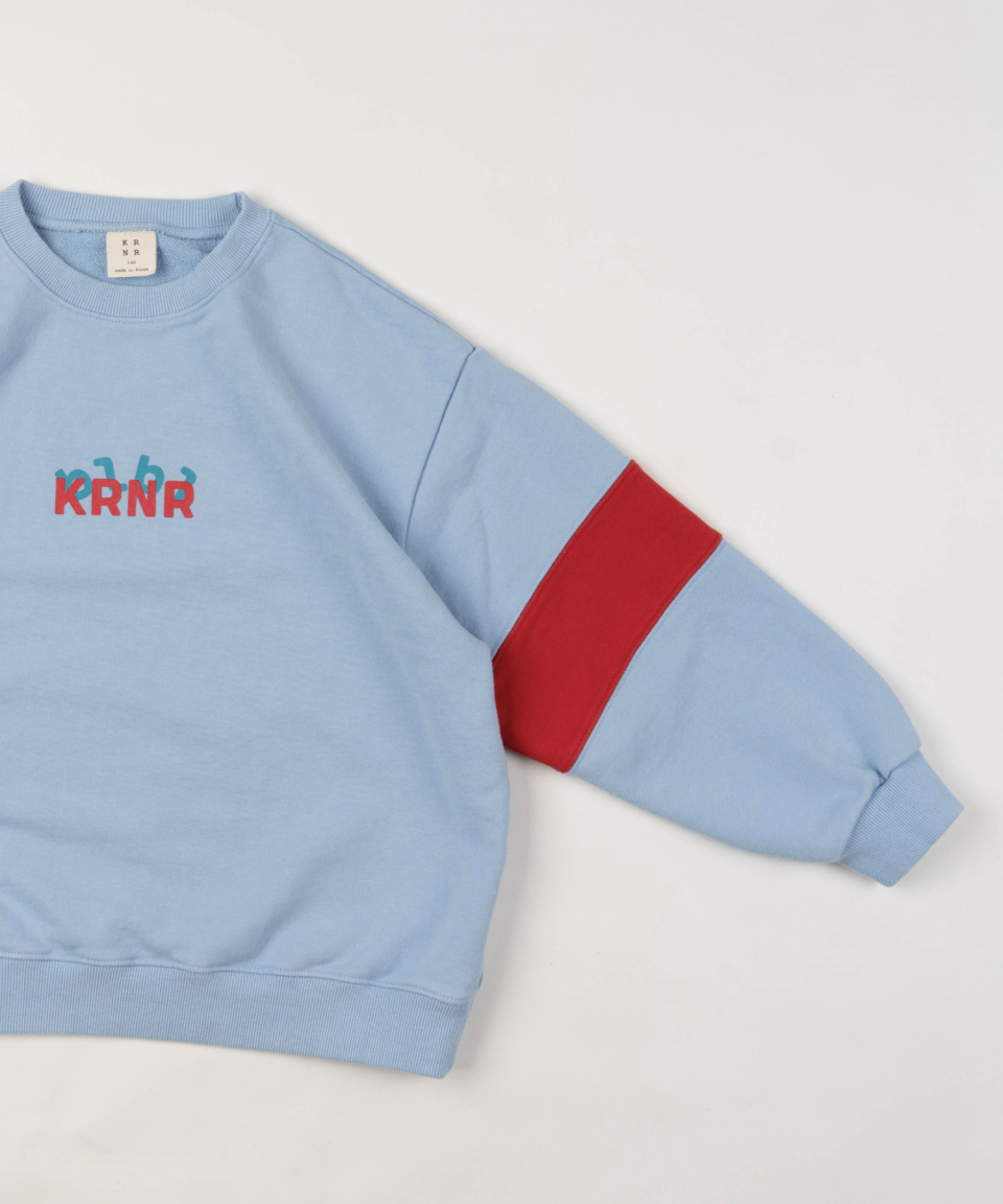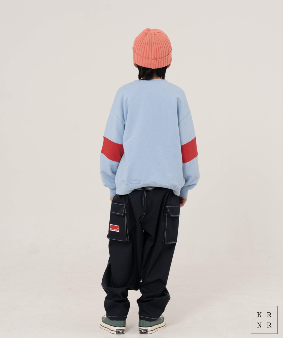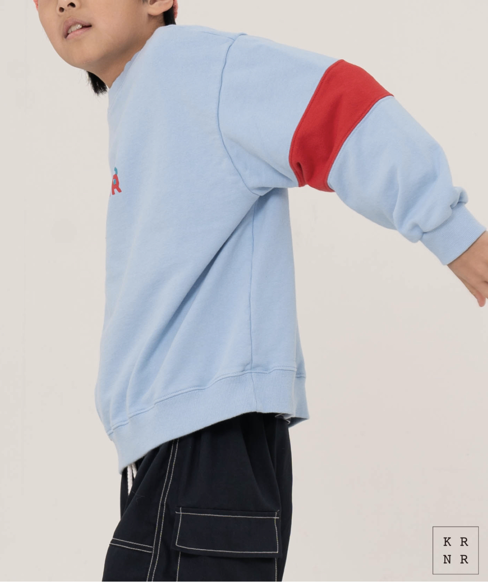 아트 오버사이즈 슬리브 컬러 블록 맨투맨 라이트블루