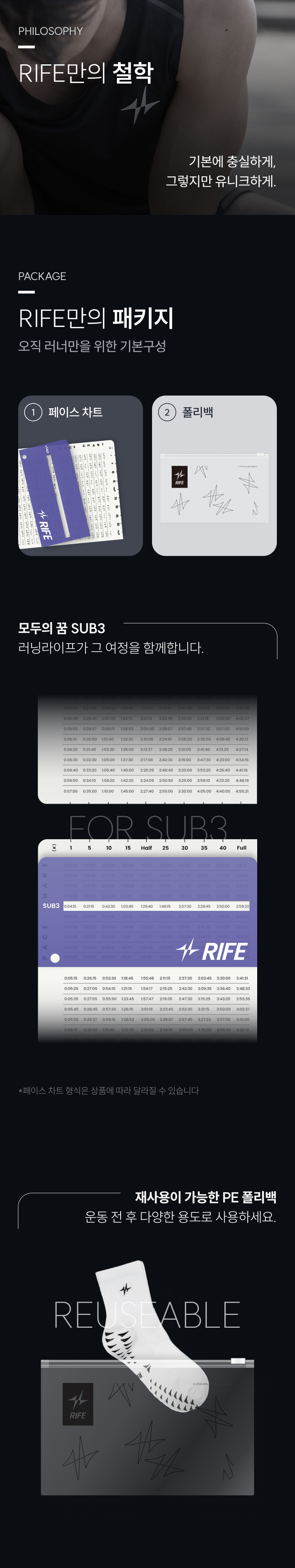 러닝라이프(RIFE)는 오직 러너만을 위해, 가격의 거품 없이 품질은 높은 제품을 제안하는 브랜드입니다. 대한민국의 모든 사람들이 러닝의 가치를 느낄 수 있도록 러너와 함께 러닝의 모든 부분을 만들어 갑니다.