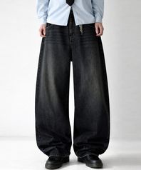 블랙 워시드 벌룬 슈퍼 와이드 데님 팬츠