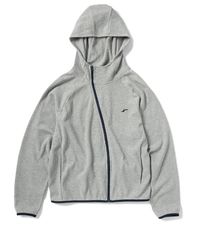커브드 하이넥 와플 후드 집업 - 멜란지