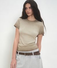 우먼즈 더티 다이드 슬림 크루 넥 티셔츠 [그레이쉬 베이지]