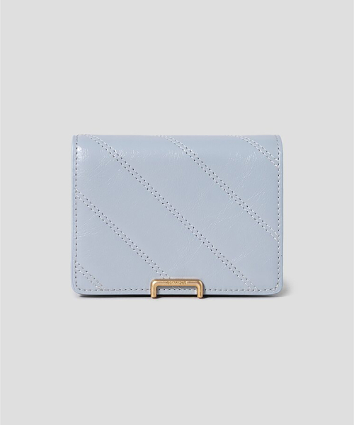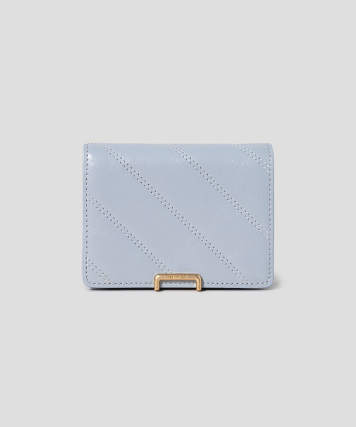 사선 퀼팅 디테일로 여성스러운 매력을 더한 명함 지갑입니다. 부드럽고 은은한 광택이 매력적인 가죽으로 제작하였으며, 금속 장식을 더해 미니멀하고 세련된 무드를 선사합니다. 덮개 형태로 자주 사용하는 카드와 지폐 수납하기 좋으며 선물용으로도 추천 드립니다.