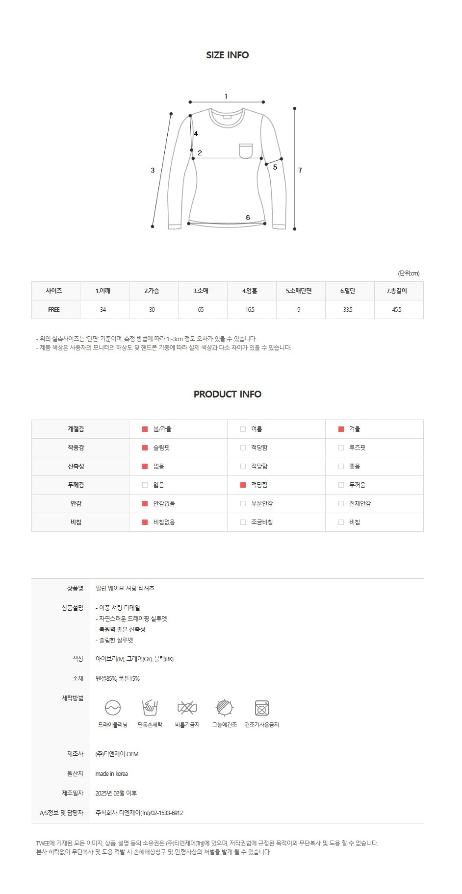 밀런 웨이브 셔링 티셔츠 [반팔/긴팔]