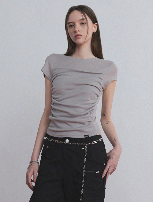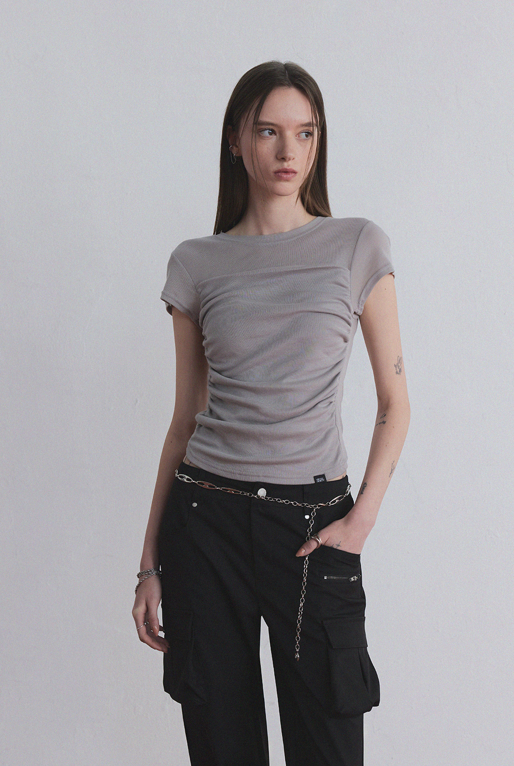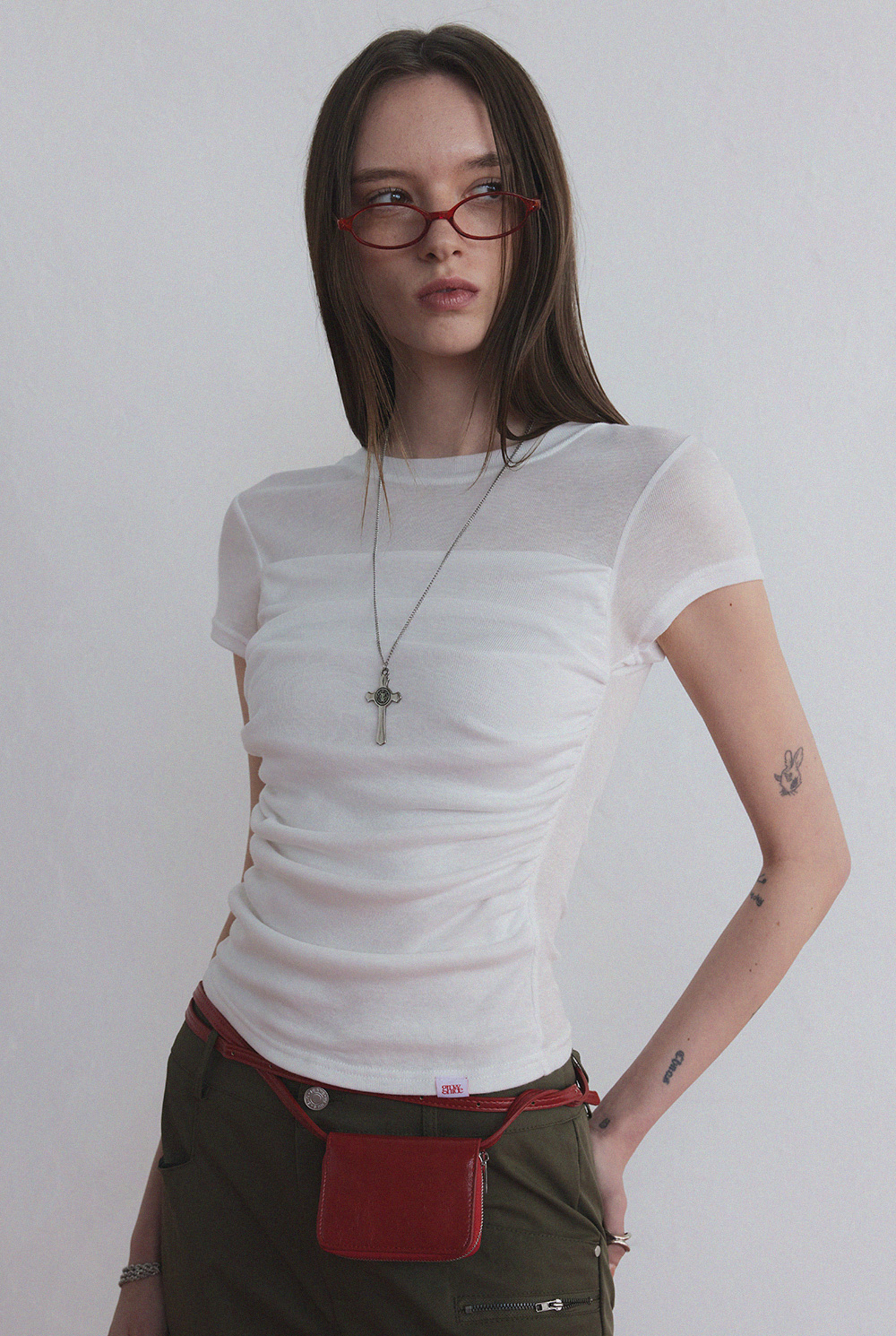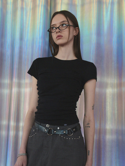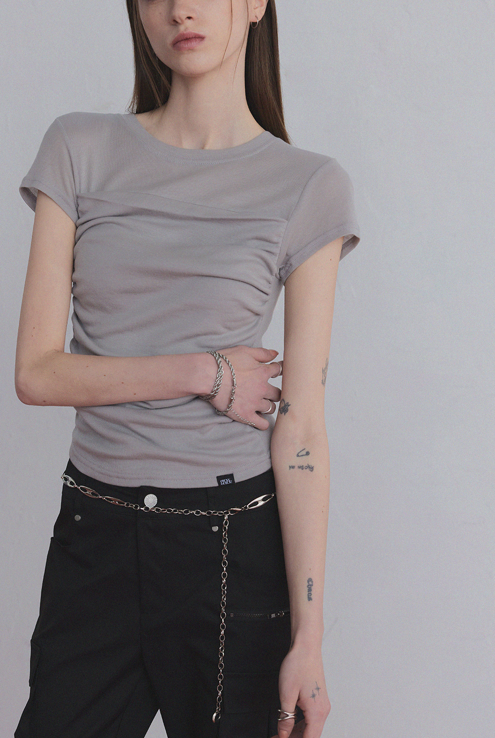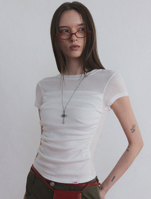 셔링 포인트 오프 레이어드 티셔츠_소라