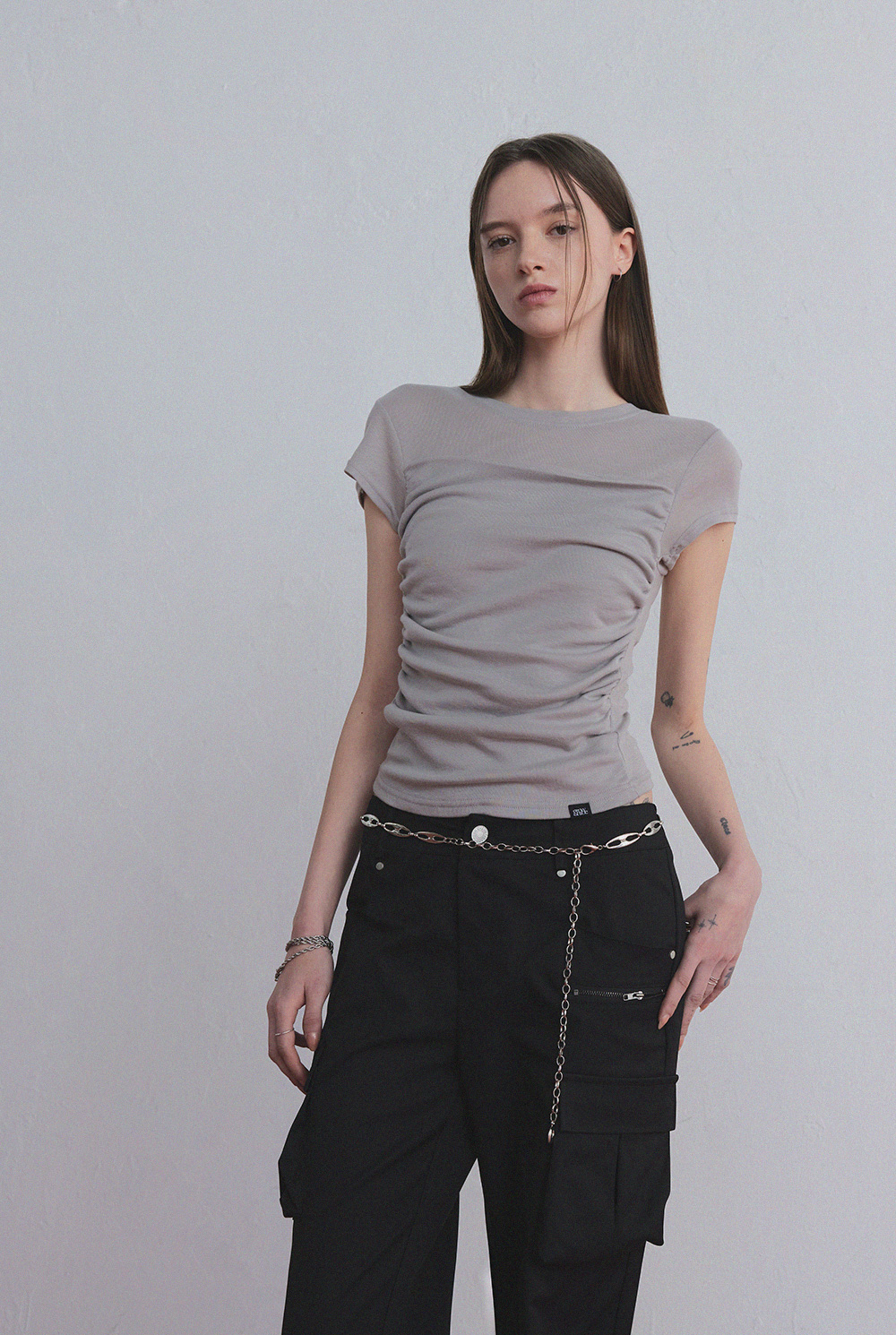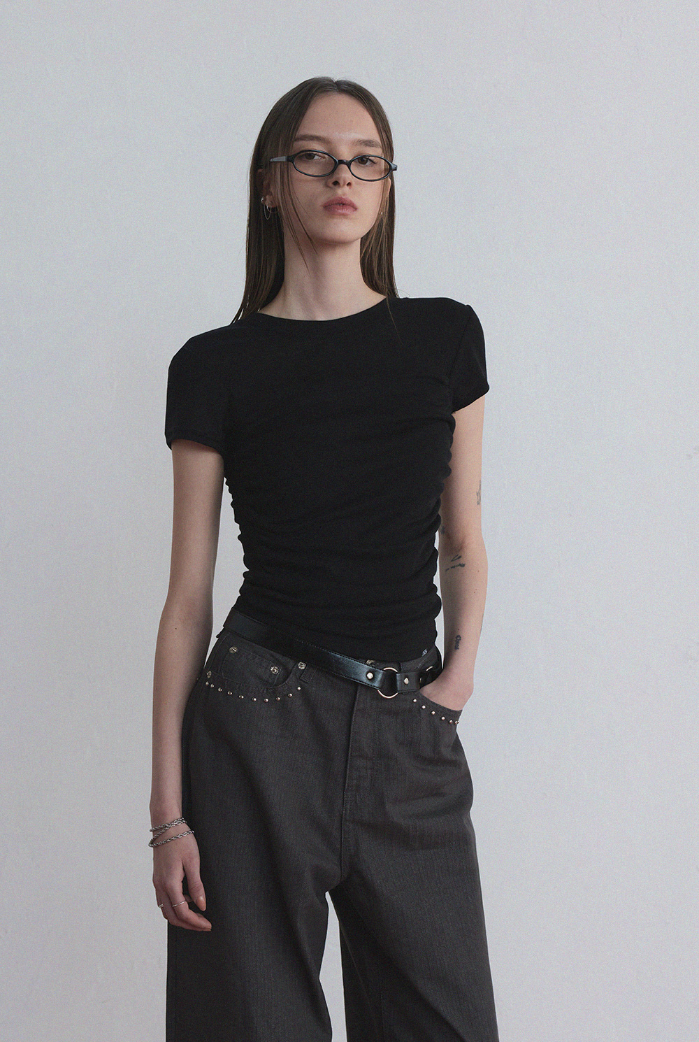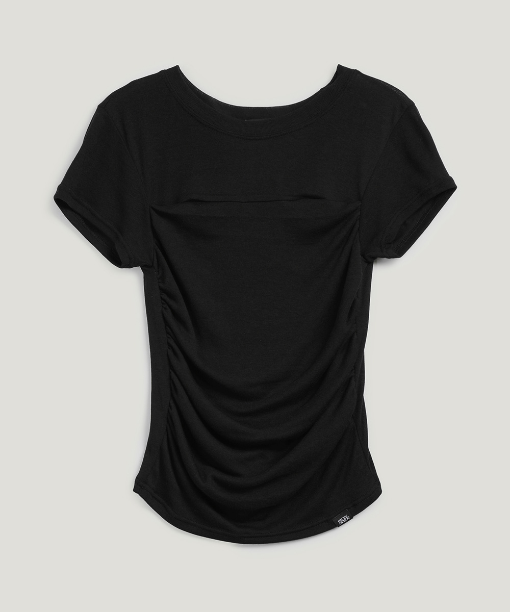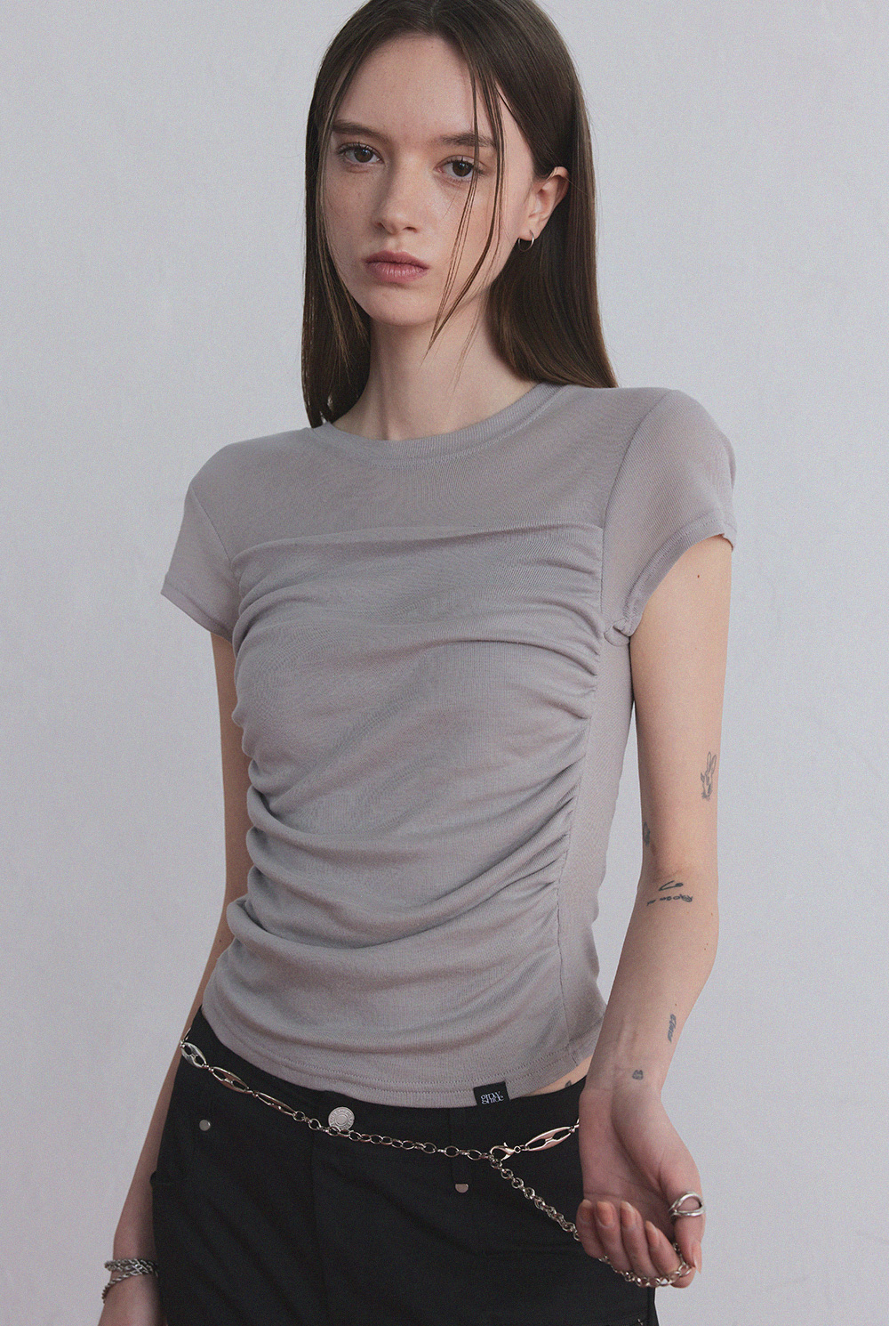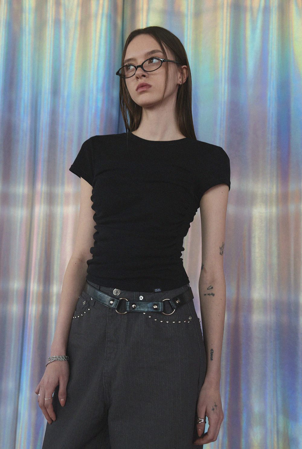 셔링 포인트 오프 레이어드 티셔츠_소라