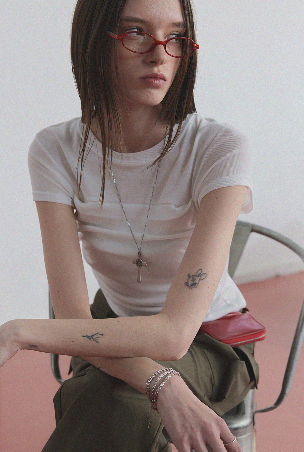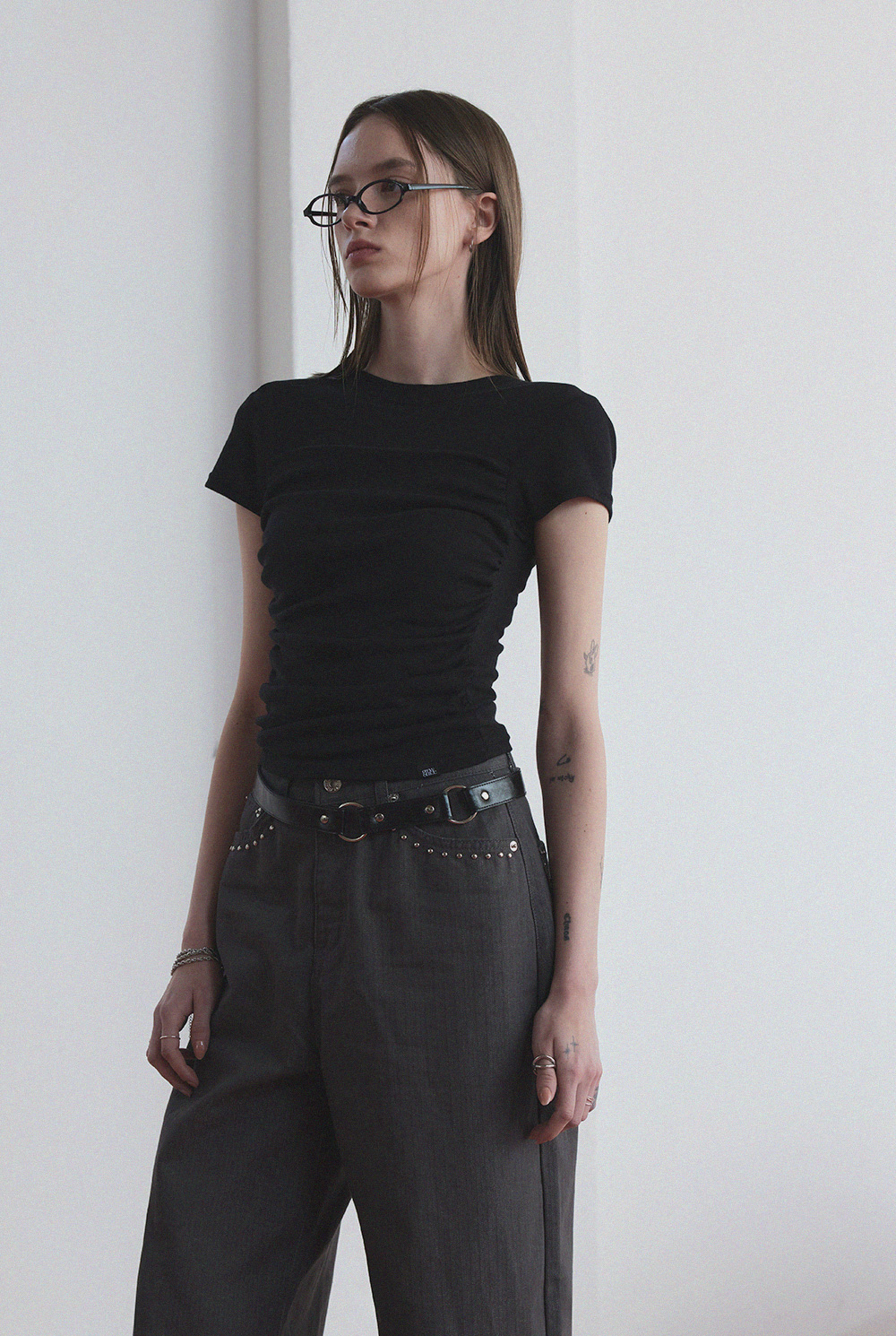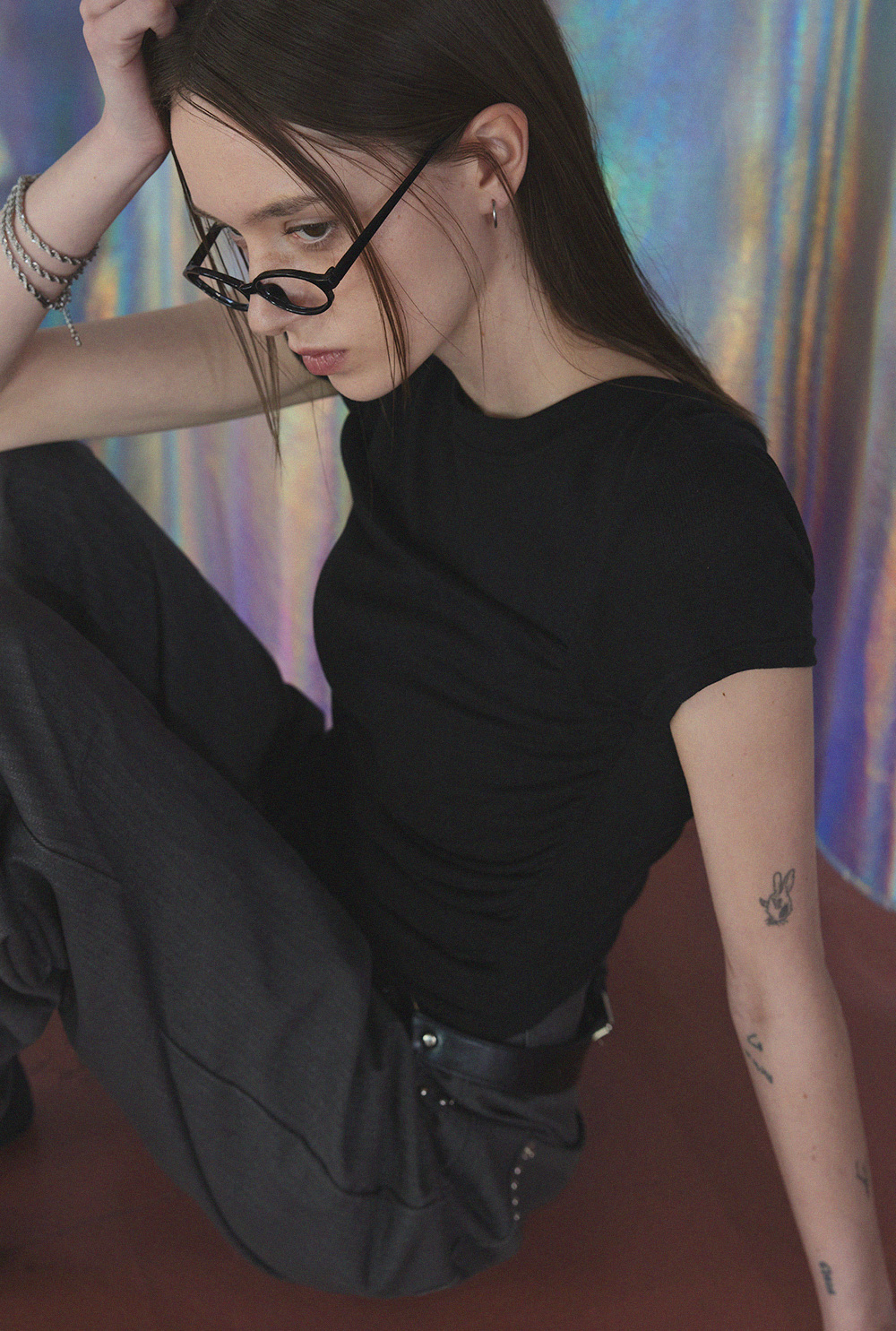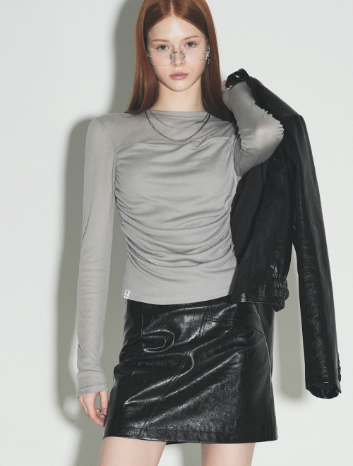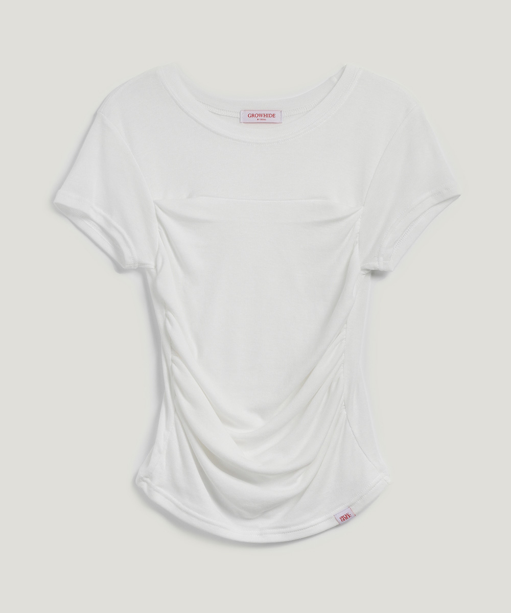 셔링 포인트 오프 레이어드 티셔츠_소라