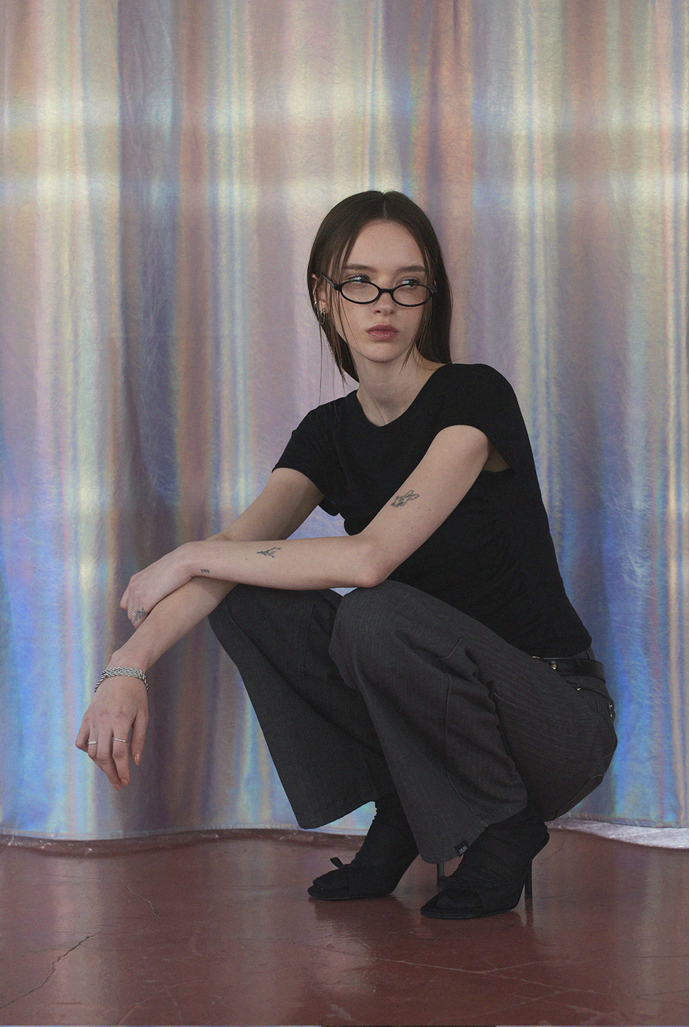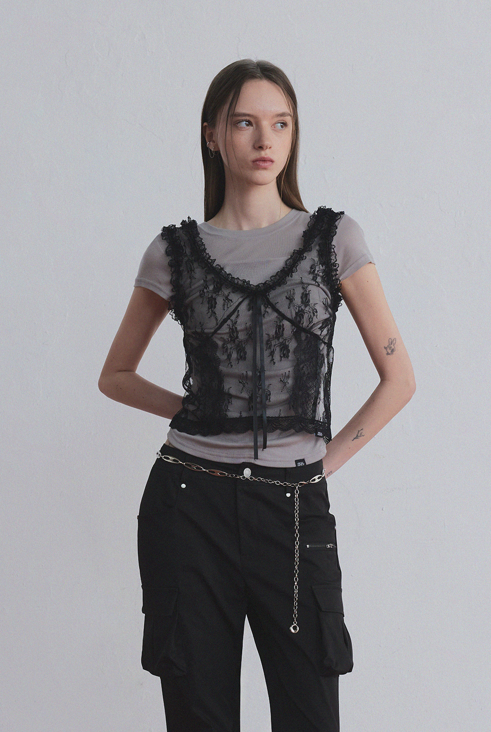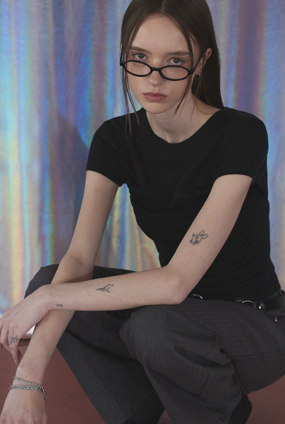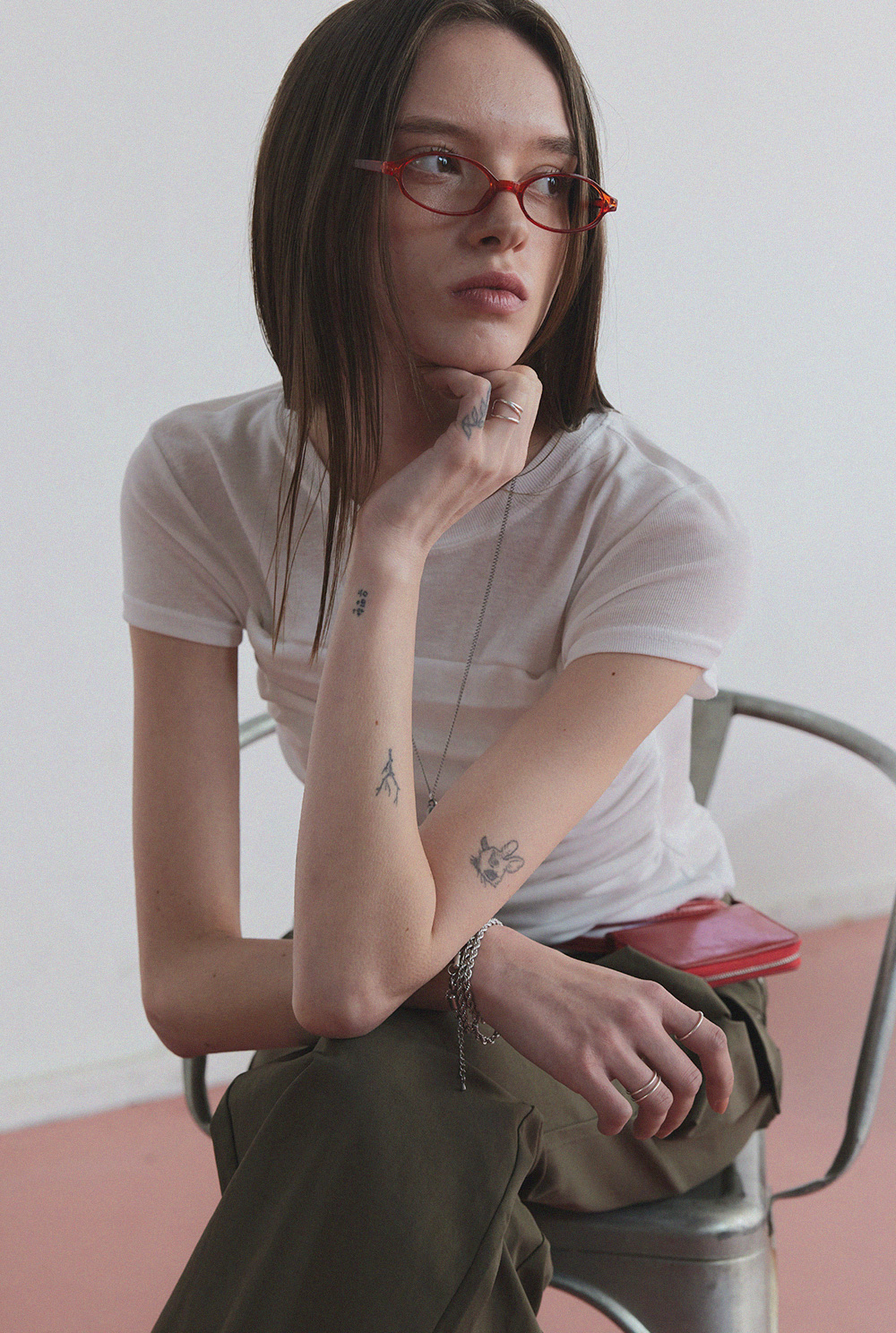 셔링 포인트 오프 레이어드 티셔츠_소라