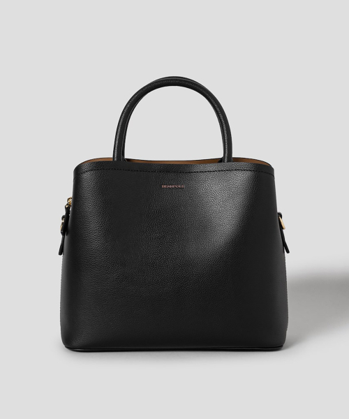 미니멀 하면서도 실용적인 디자인의 토트백입니다. 외형 변형이 적은 엠보 가죽으로 제작되어 흠집에 강하고 내구성이 좋아 오래도록 착용할 수 있습니다. 내부 수납공간이 3단으로 나누어져 있어 실용적이며, 가운데 수납공간에는 지퍼 포켓이 있어 소지품을 안전하게 보관할 수 있습니다. 크로스로 착용 시 핸들을 안쪽으로 내려야 편안합니다.