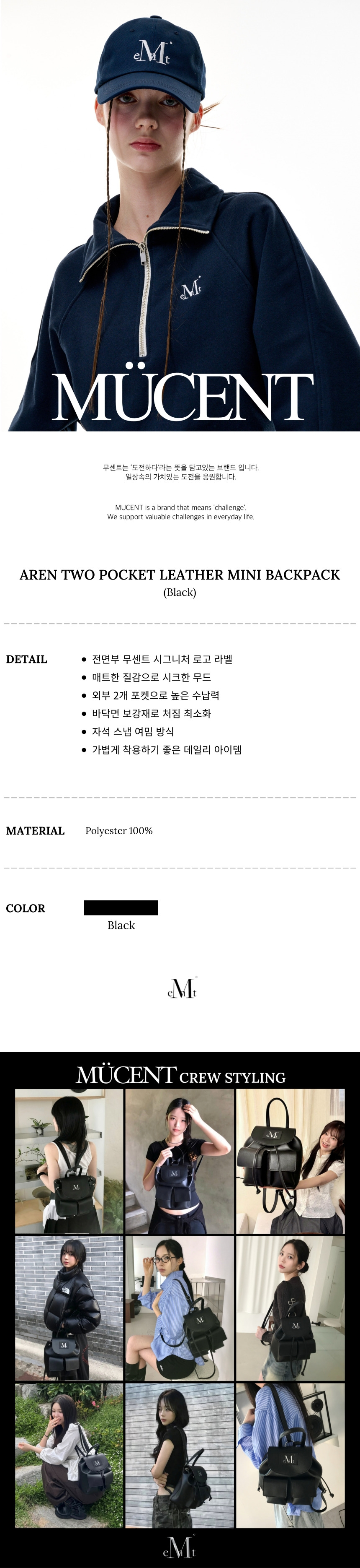 아렌 투 포켓 레더 미니 백팩 남녀공용