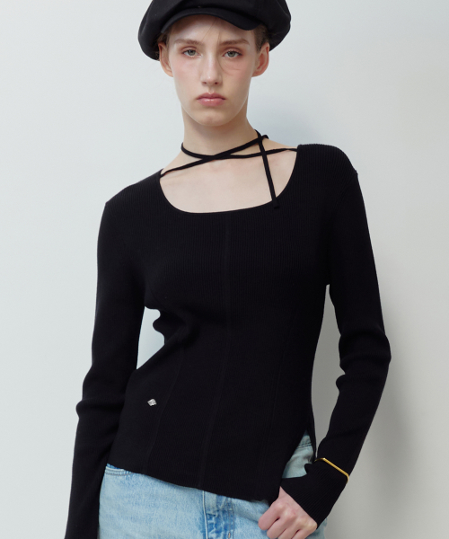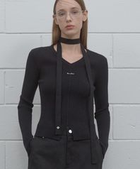 브이넥 니트 & 머플러 SET_RAF4ER2701BK